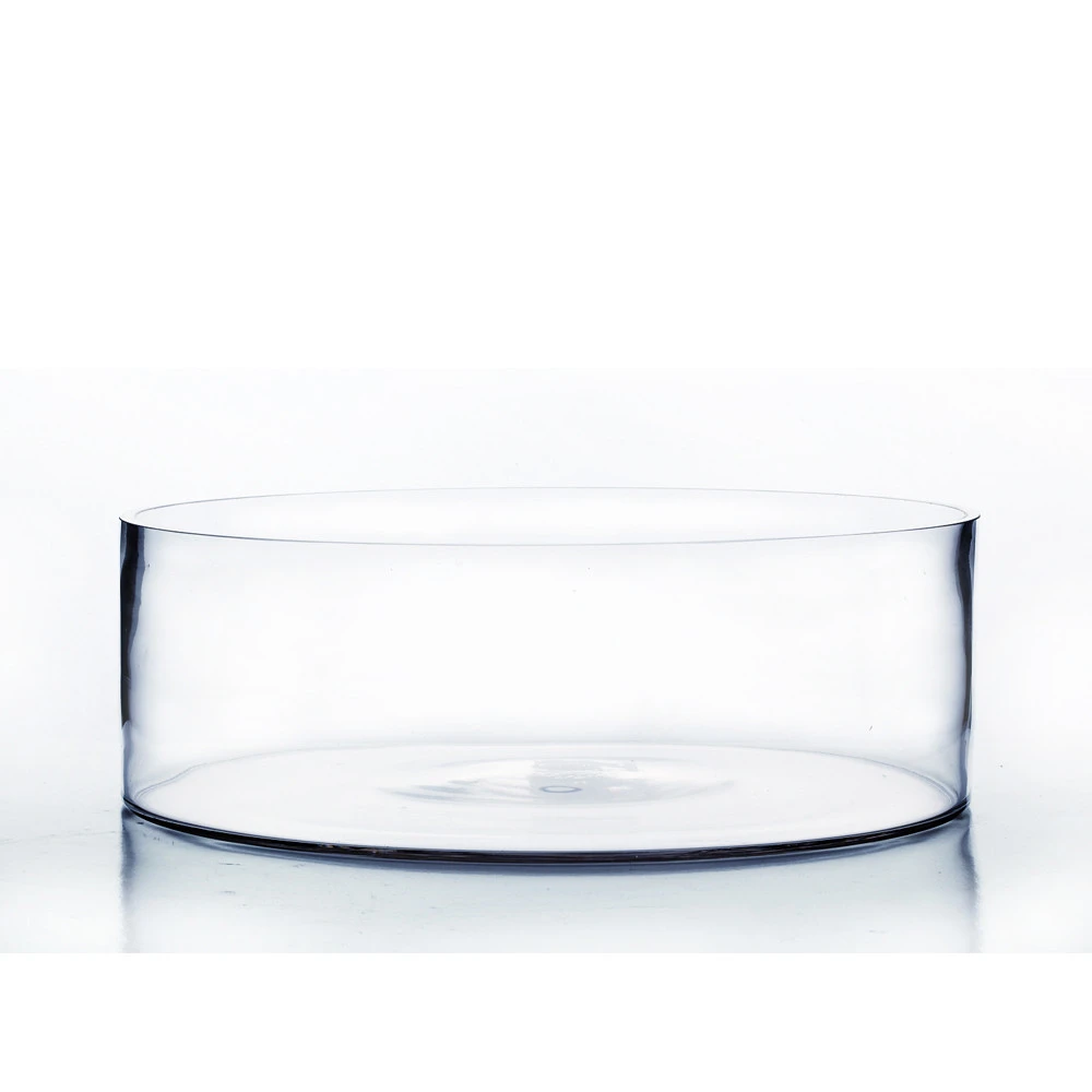 This piece stands out because it features a lower height and wider shape so it feels more like a reflecting pool than a tall cylinder. Each includes a 12″ opening on top with a matching diameter around the bottom. Straight, clear walls rise up, surrounding the broad interior and keeping contents in place. The flat base also ensures that the unit will never roll off of tables and break.