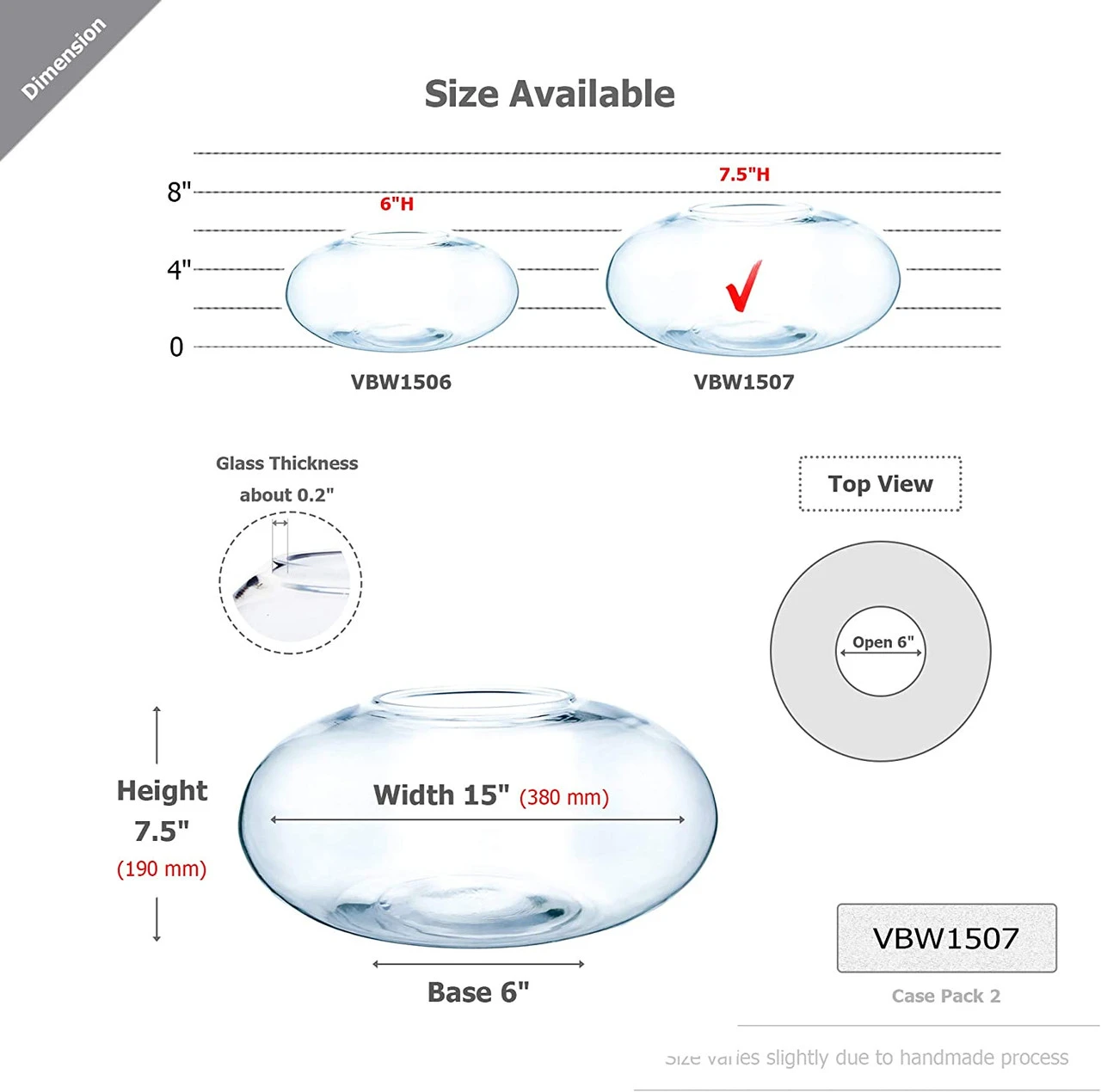 15″ x 7.5″ Clear Flat Oval Bubble Bowl Vase – 2 Pieces