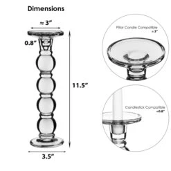 Bubble Glass Dual Use Pillar Taper Candle Holder, H-11.25″ W-3.5″ (Wholesale 8 PCS/Case)