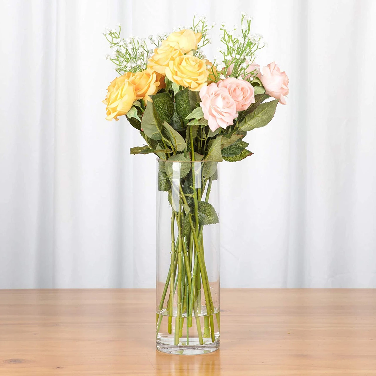 There are so many ways to display our gorgeous cylinder vases. These luxurious pieces have a very simple personality that is enhanced by all the things you place inside or around it. Each glass item we sell is made with high quality material so you get the best value for your purchase. This also means that the piece is long lasting and, when properly handled and cared for, will offer years of beautiful displays in any setting.
