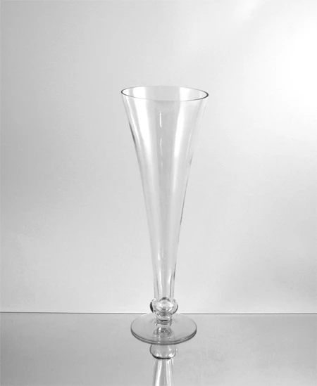 Customize your unique flared trumpet vases with anything you like! Fill with flowers, feathers, tissue paper, fabric or water and a floating candle. We also carry a generous selection of vase fillers, including our water gel beads. Water gel beads are ideal for glass vases like this because they will immediately conform to the unusual size and shape of the container when soaked beforehand. Our 17” unique flared trumpet vase is available in case quantities of 4.