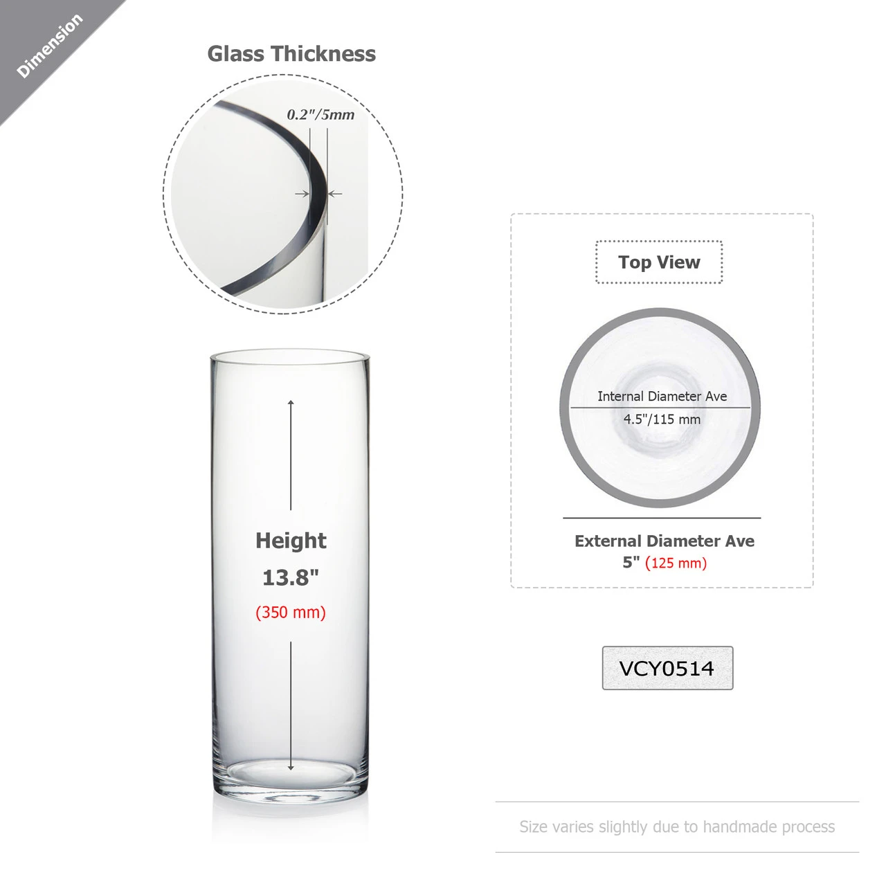 5″ x 14″ Clear Cylinder Glass Vase – 12 Pieces