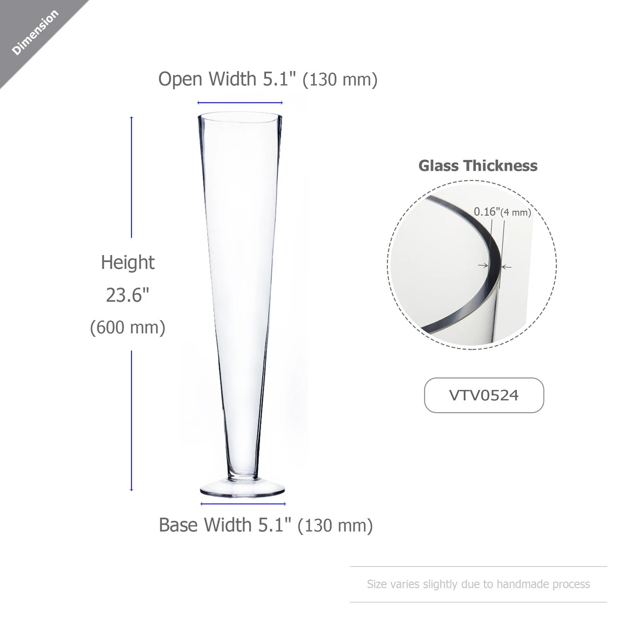 Our 24” vase comes in case quantities of six so you can get what you need for small to large size venues. Use as the foundation for a centerpiece or accent décor or use to hold important items, like wedding sparklers, bouquets, wands or tall party favors. Also check out our vase filler collection to find more ways to customize your trumpet vases!