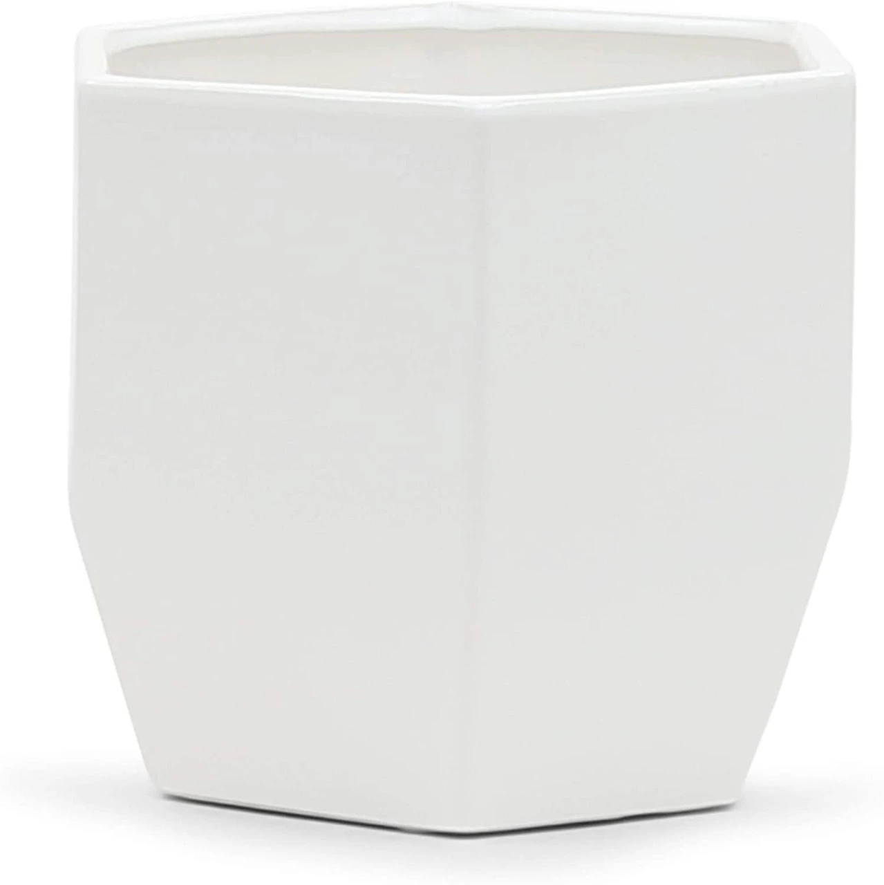 6.3″ x 6″ Large Geometric Pot – Matte White