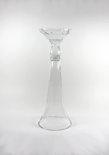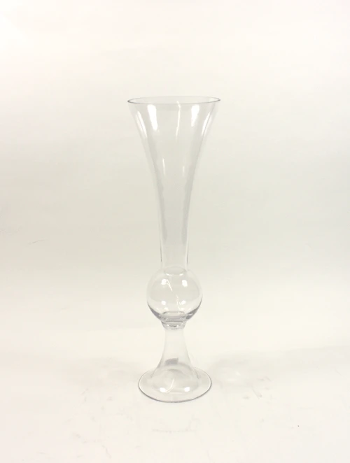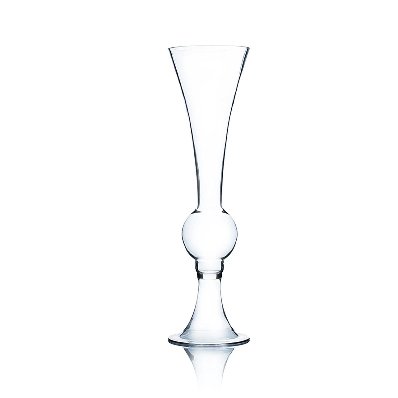 Add your favorite things to this piece and create something new and exciting for your next event! The taller portion is ideal for long stemmed flowers and lengthy ostrich feathers. You can also add brilliant color by filling the container with our water gel beads, which come in a rainbow of colors as well as clear. Our 20” reversible Latour trumpet vase is available in case quantities of 6.