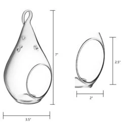 Glass Hanging Teardrop Plant Terrarium Candle Holder, H-7.25″ W-3.5″ (Wholesale 36 PCS/Case)