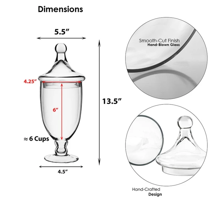 Glass Candy Buffet Apothecary Jar, H-13.5″ D-4.25″