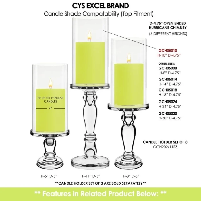 Glass Hurricane Candle Holder Shade Chimney Tube, H-10″ D-4.75″