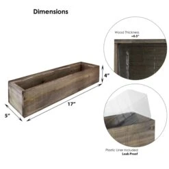 Natural Wood Rectangle Planter Box With Plastic Liner, 5″ X 17″ X 4″ (Wholesale 12 PCS/Case)