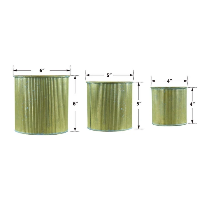 Corrugated Zinc Metal Cylinder Planter Pots, Set of 3 (12 SETS/Case)