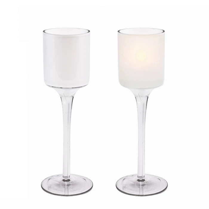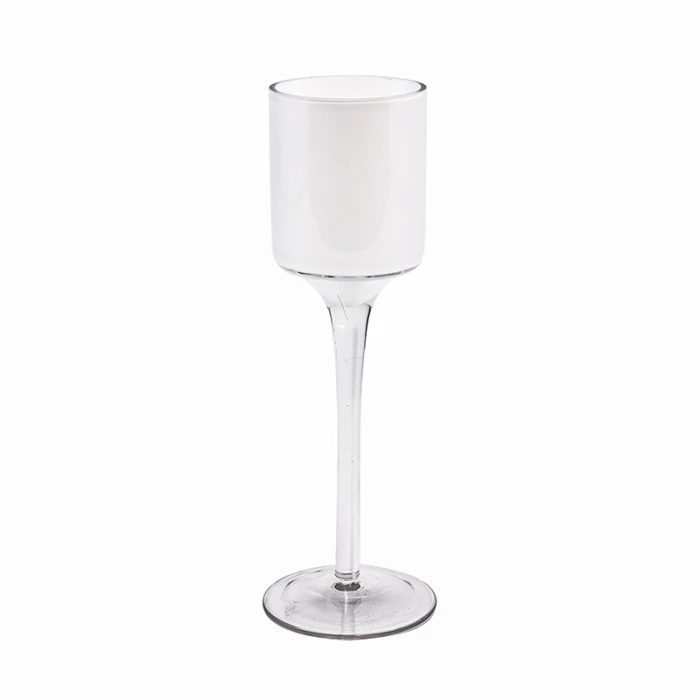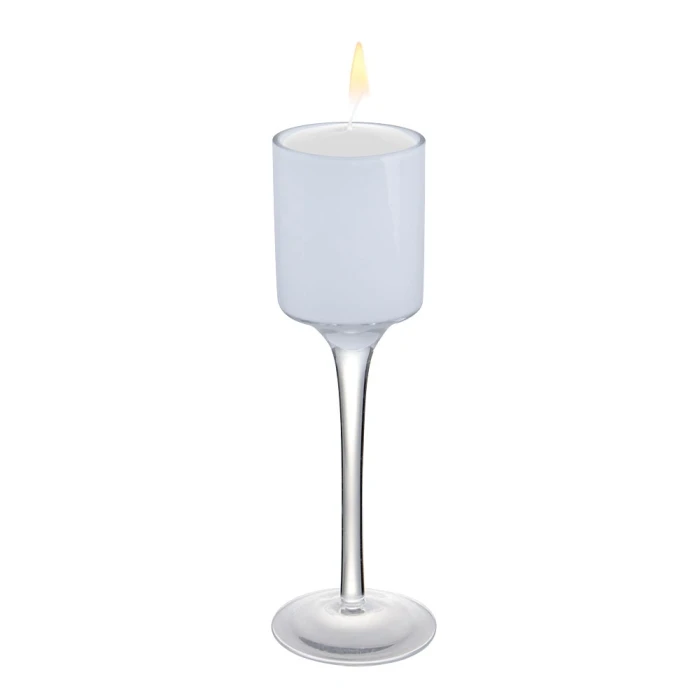 White Glass Long Stem Candle Holder, H-7.5″ D-2″