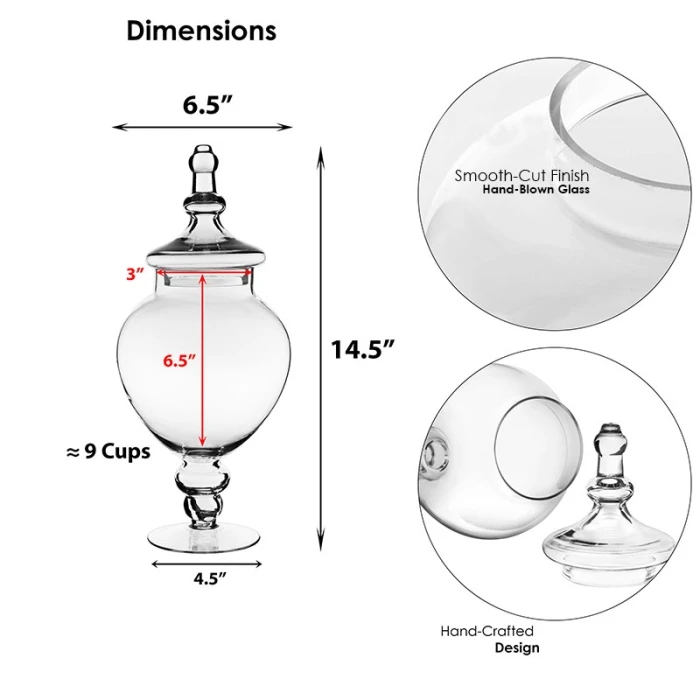 Glass Candy Buffet Apothecary Jar, H-14.5″ D-3″