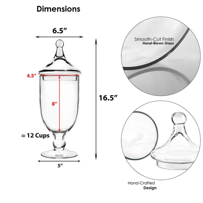 Glass Candy Buffet Apothecary Jar, H-16.5″ D-4.5″