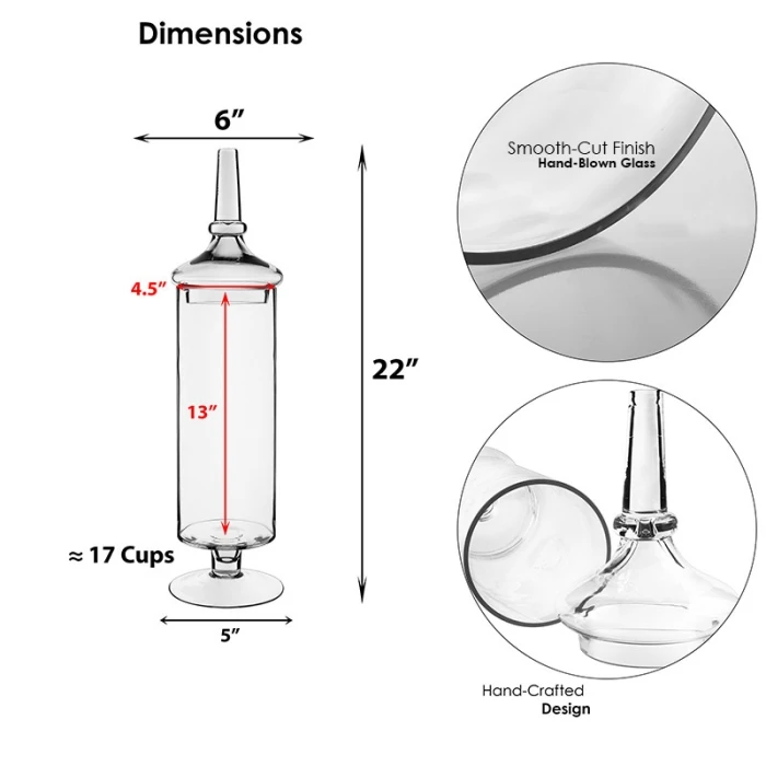 Glass Candy Buffet Apothecary Jar, H-22″ D-4.5″