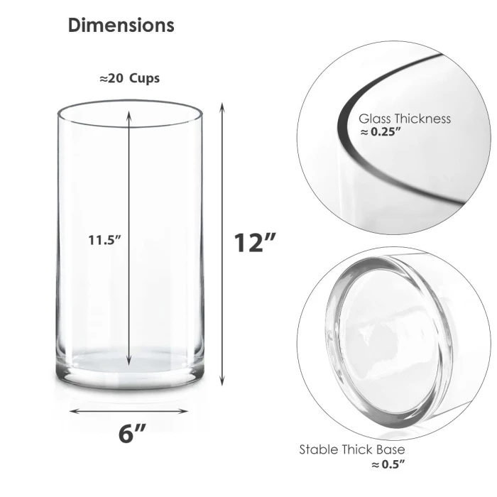 Glass Cylinder Vase, H-12″ D-6″