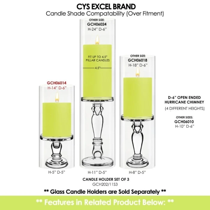 Glass Hurricane Candle Holder Shade Chimney Tube, H-14″ D-6″
