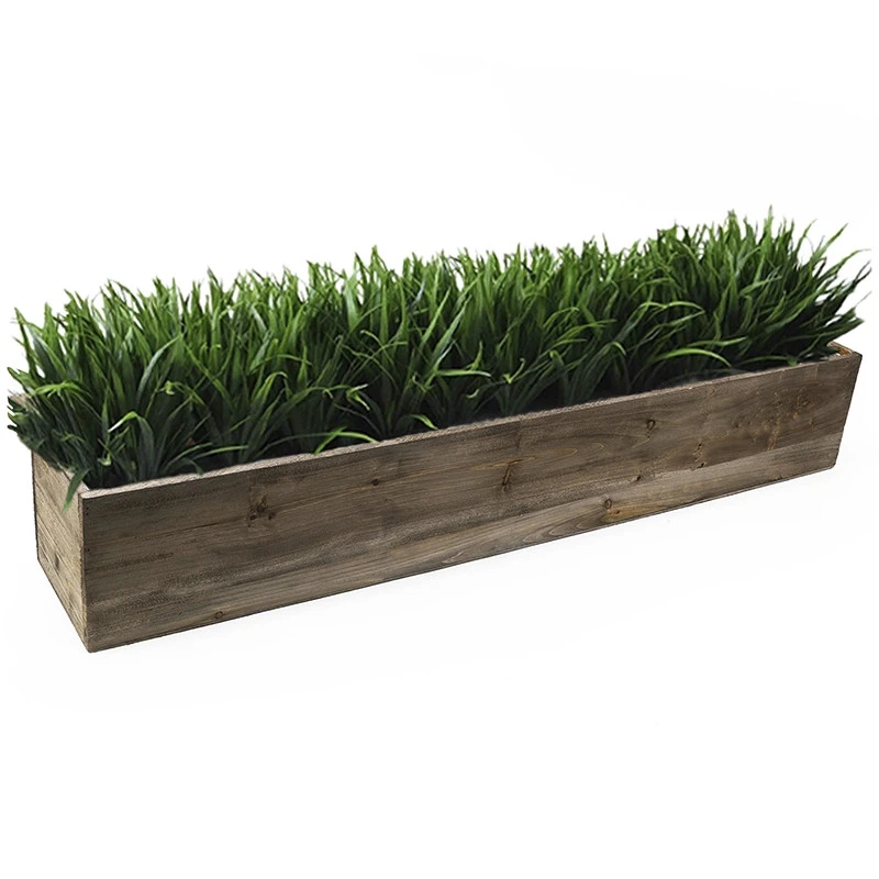 Wood Rectangle Planter Box With Metal Zinc Liner, 6″ x 30″ x 6″
