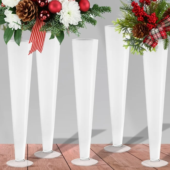 White Glass Trumpet Vase, H-24″ D-4.5″ (Wholesale 6 PCS/Case)