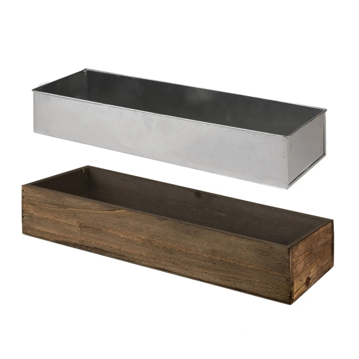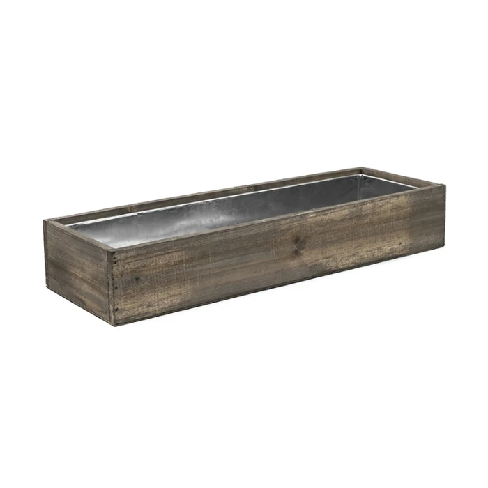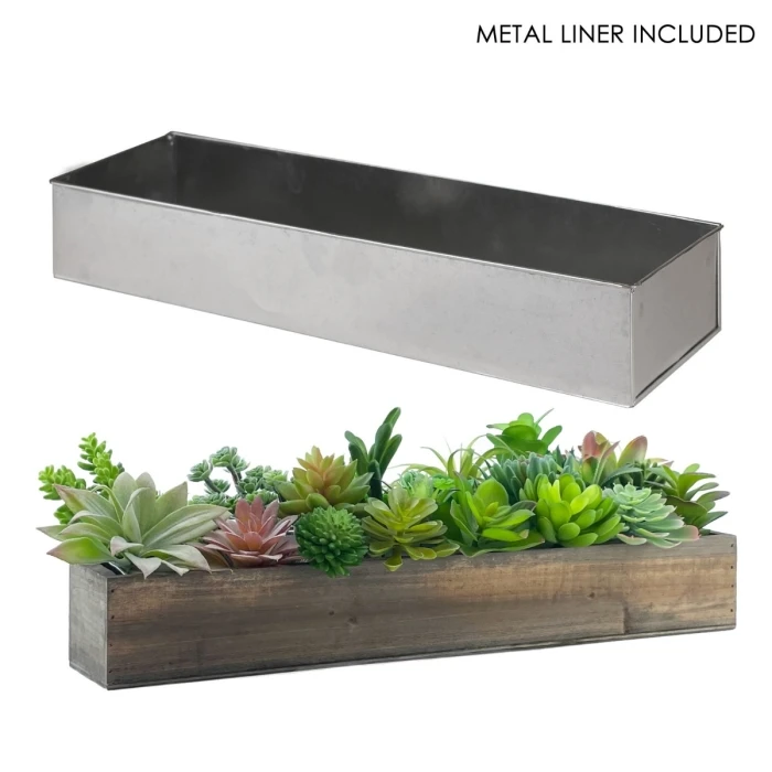 Wood Rectangle Planter Box With Metal Zinc Liner, 6″ x 18″ x 3″