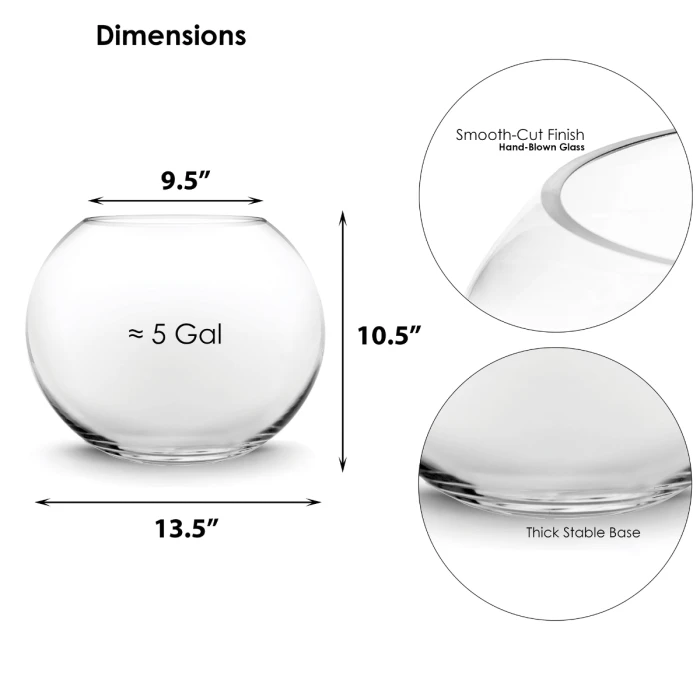 Glass bubble bowls are a unique style vase that is great for modern decorating. As the name suggests, the glass curves into a bubble like sphere with an opening at the top. You can brighten up any room by filling the bowls with colorful vase fillers. They also make great terrariums for all kinds of plants: drought-tolerant plants like succulents and cacti, or submersible freshwater plants like marimo moss balls and java ferns. This 15.5 inch wide bubble bowl is a simple yet sophisticated piece and it’s an excellent size for keeping various types of fish. Certainly accommodates your decorative vision and make a large dramatic displays for tables in dining rooms and living rooms.