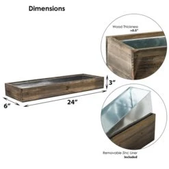 Natural Wood Rectangle Planter Box With Plastic Liner, 4″ X 22″ X 5″ (Wholesale 6 PCS/Case)
